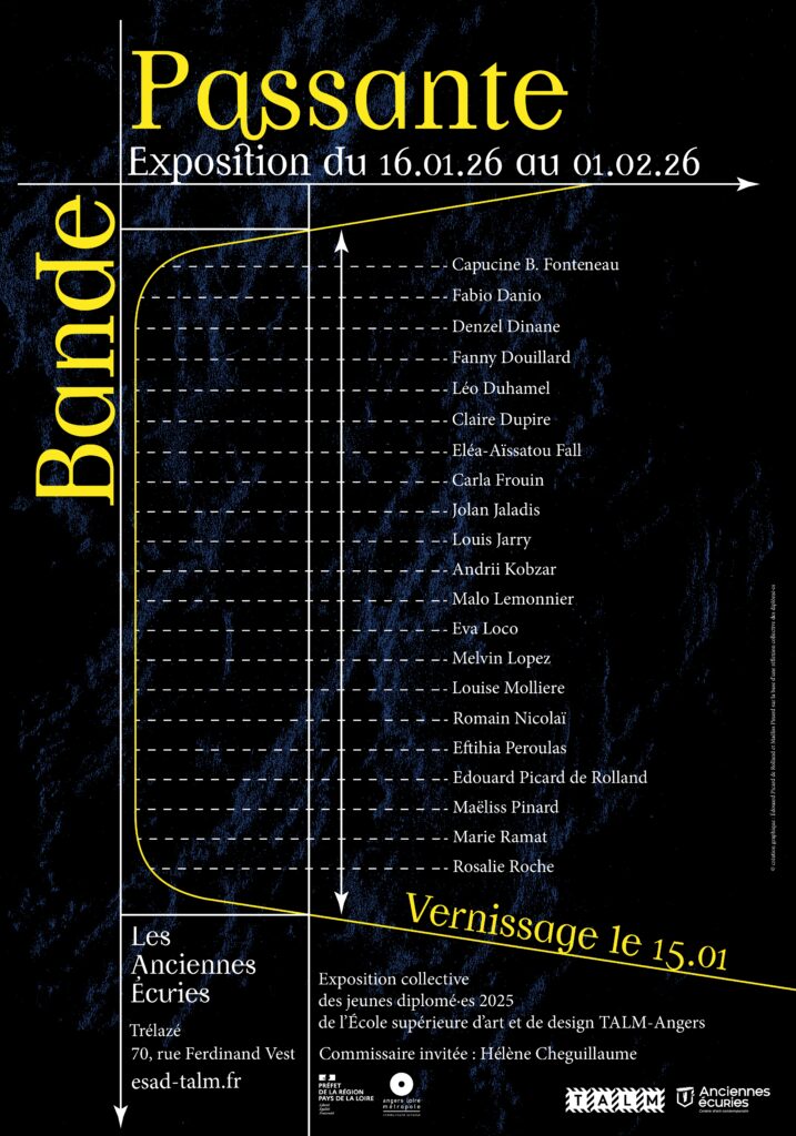 Les jeunes diplômé·es de l’École supérieure d’art et de design TALM – Angers investissent les Anciennes Écuries avec une exposition ambitieuse. Une première présentation en conditions professionnelles qui révèle la richesse, l’audace et la fraîcheur de la jeune création contemporaine. Peinture, design, installation : la relève est là.