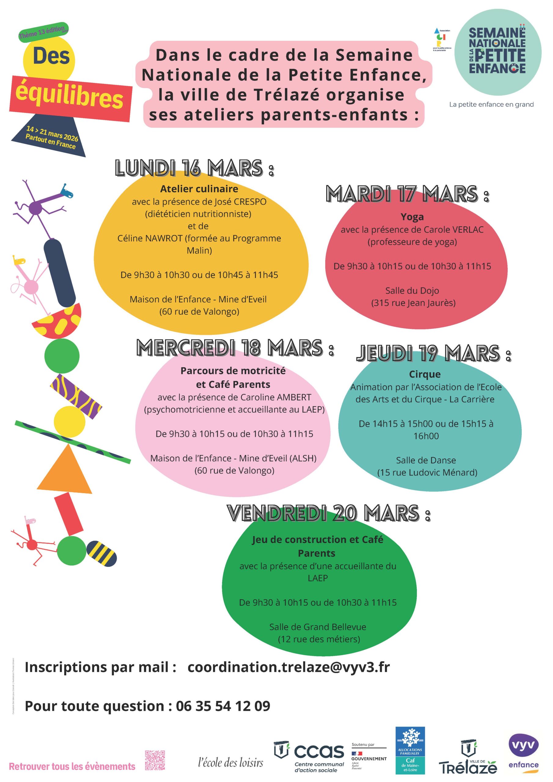 La ville de Trélazé s’associe à l’événement national de la semaine de la petite enfance pour réunir l’ensemble des acteurs du territoire œuvrant auprès des familles de tout-petits et ainsi créer une dynamique commune lors de ce moment fort sur le thème : Des équilibres…